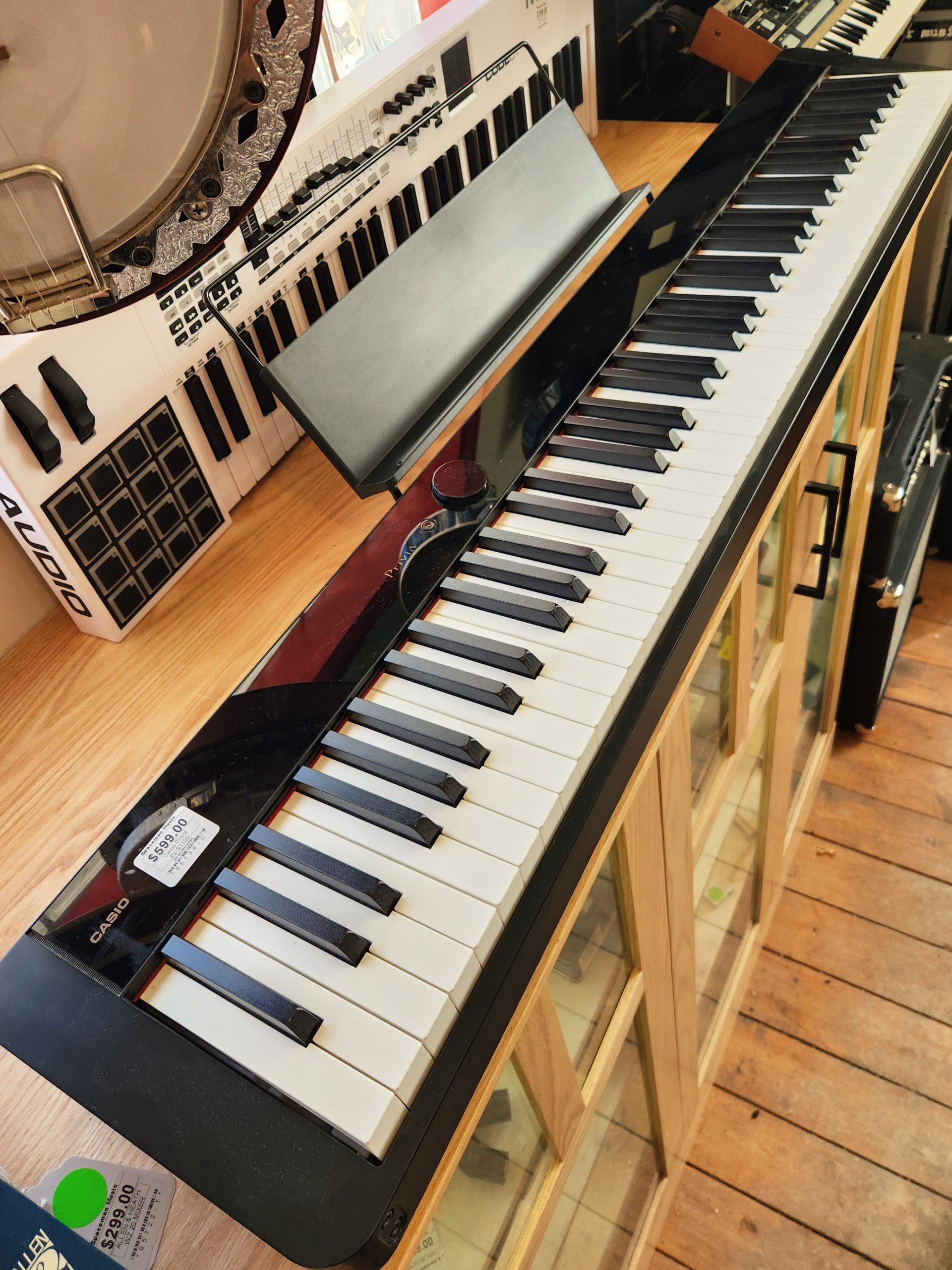 Includes two phones jacks (allowing two people to listen to the performance) handy for nighttime playing.